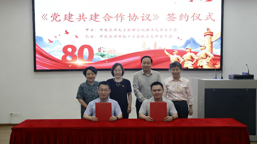 本次党建共建活动以“红色薪火映华诞,人道传承续荣光”为主题,引导广大师生在回望峥嵘岁月中坚定信仰,在赓续红色血脉中凝聚力量。活动现场,苏州市红十字会和苏州大学苏州医学院护理学院签署党建共建协议。今后,双方将坚持党建引领,持续整合资源,推动红十字志愿服务与护理使命深度融合,大力弘扬红十字精神和南丁格尔精神,为保障和改善人民群众生命健康作出更大贡献。