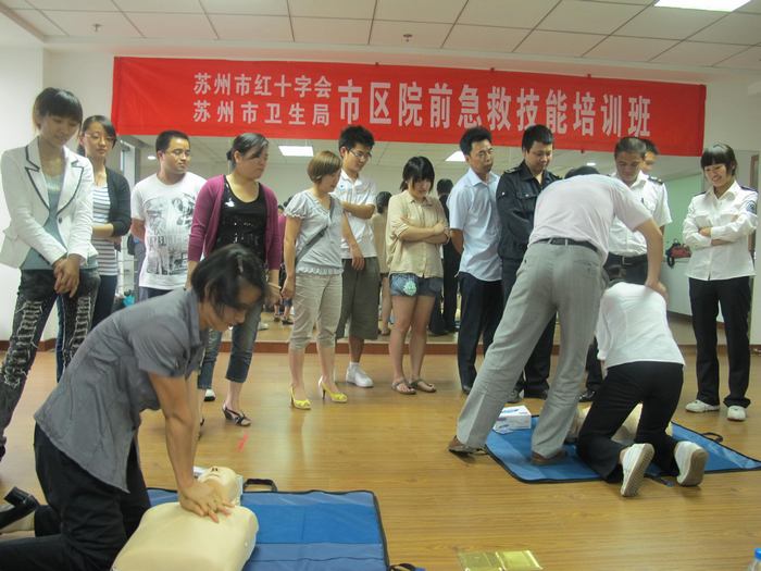为加强急救分站救护人员岗位培训,进一步提高其院前急救技能,及时、有效地开展卫生应急救援工作,尽可能减轻突发公共事件和意外伤害事故给人民生命和健康造成的伤害,8月25—26日,市红十字会联合市卫生局在苏州大学附属第二人民医院举办了一期院前急救技能培训班。来自全市各急救分站的42位院前急救人员参加了培训。