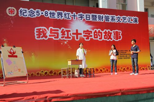 在文艺汇演举行前,红十字会血站的献血车开进了校园,30多位符合条件的学子挽起手臂,加入到无偿献血的队伍中,完成了他们人生中的第一次无偿献血,以一种特殊的方式纪念世界红十字日。