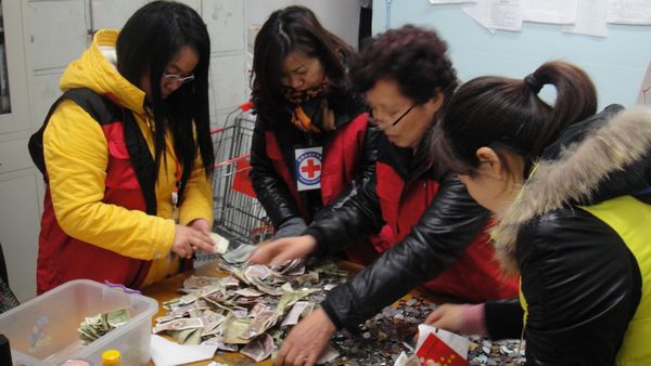 1月15日下午,常熟市红十字会对位于海虞北路常客隆购物广场的红十字募捐箱进行开箱清点,经过7名红十字志愿者和广场工作人员1个多小时的忙碌,这只沉甸甸的募捐箱才算见底,共清点到顾客爱心捐款2830元。