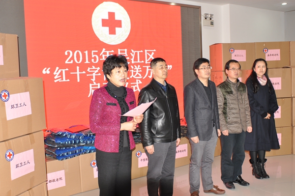 “博爱送万家”活动,是红十字会针对困难群众进行人道救助的一个品牌项目,1月13日,吴江区红十字会2015年 “博爱送万家”活动正式启动,又一次吹响广泛动员社会力量献爱心、扬正气、传递社会正能量的人道公益集结号。吴江区委办公室副主任孙宇文、区民政局副局长何金训、区城管局副局长朱根龙、区总工会副主席程杰出席活动,区红十字会常务副会长沈小红主持仪式。