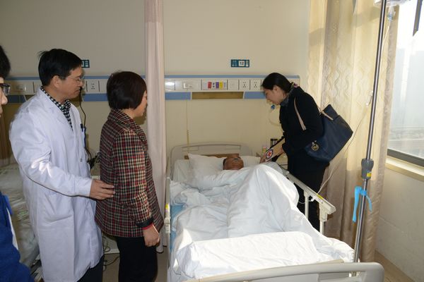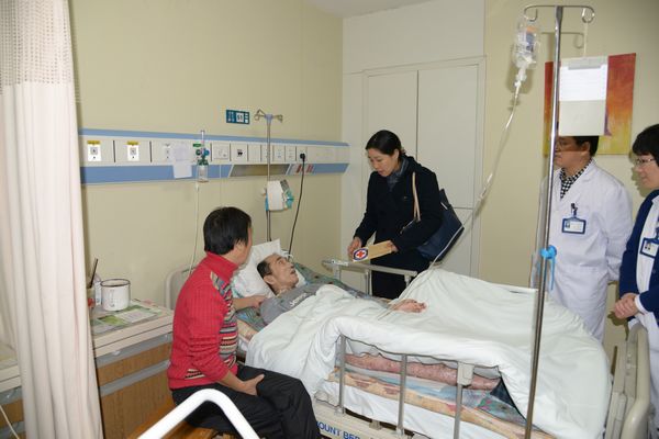 走访中,病区护士长们分别介绍了病人的病情和家庭情况,75岁的徐好婆是太仓板桥人,去年8月被诊断为肺癌,家中老伴年纪大了无劳动能力,儿媳妇有精神病史,也无法正常上班,家庭收入基本上靠儿子一人做木工为主。徐好婆目前在市一院接受治疗,已经用去了约4万余元,这对于本不富裕的家庭来说是一笔不小的支出,病床上的她看着很憔悴,或许是病魔的折磨,或许是在为后续的治疗费担心。当看到慰问小组前往探望她时,她连声道谢,感谢社会上的好心人帮助她。