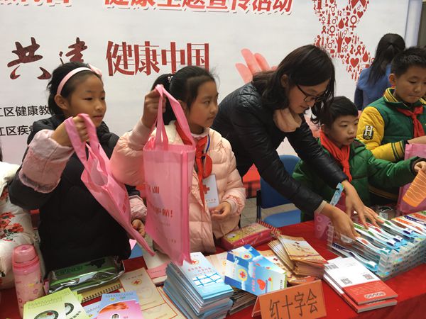 担任此次活动宣传工作的还有来自吴江鲈乡实验小学的小红十字志愿者们。活动现场,她们忙碌的小身影来回穿梭,帮忙向企业员工们发放宣传折页。孩子们的参与让我们认识到,艾滋病防治需要全社会共同关注。对于艾滋病人,也需要全社会共同关心。