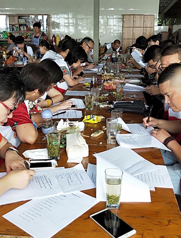 茶叙开始不久,工作人员就把满满五页有关造血干细胞捐献知识的学习材料分发给每个人,待大家消化得差不多时,又将“造血干细胞捐献知识问答40题”下发,要求大家趁热打铁,当场答卷。答卷下发后,志愿者们都认真答起题来。五十多岁的红十字志愿者黎松说:“在这样的氛围里,倚老卖老不做题,感觉有点对不起这个活动,一做题,竟发现收获还真不少!”。