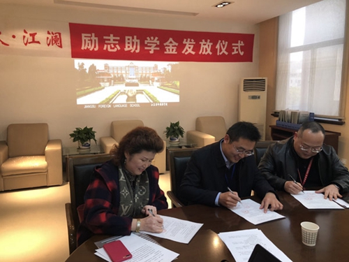 12月11日,吴中区红十字会在江苏省外国语学校举行“成大·江澜”励志助学金发放仪式。