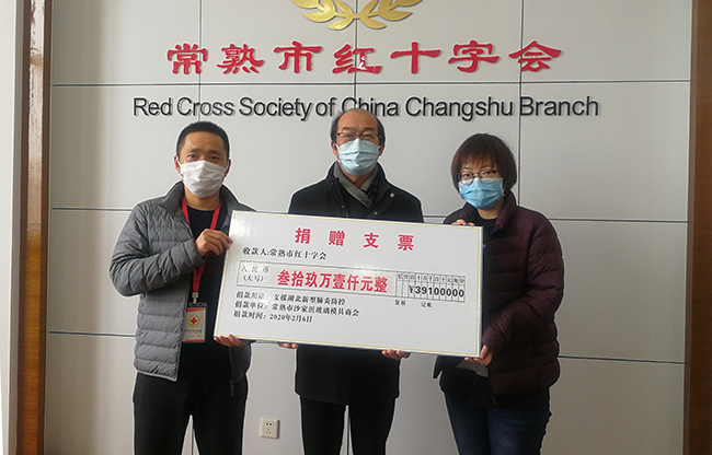 2月6日下午,常熟市沙家浜玻璃模具商会常务副秘书长常筱咪将39.1万元捐款专程送到常熟市红十字会,用于武汉防控疫情阻击战,这是常熟市红十字会目前收到的最大一笔企业专项捐款。