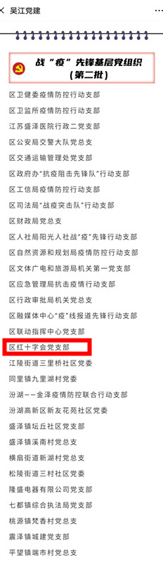 3月1日,吴江区红十字会党支部获评吴江区战“疫”先锋党组织。喜讯传来让全体党员备感振奋,备受鼓舞!