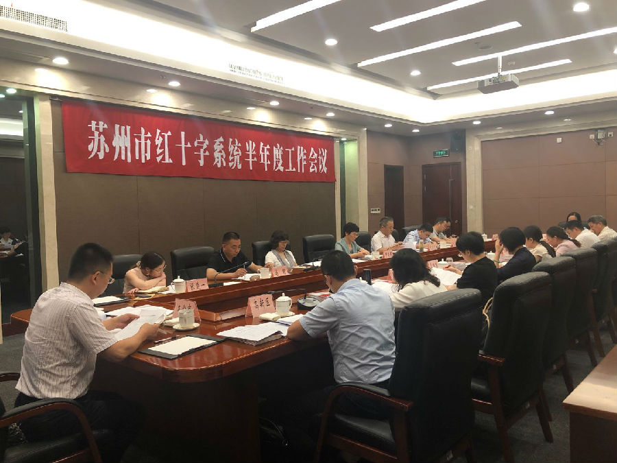 7月17日,苏州市红十字会在太仓市行政中心召开半年度工作会议,深入贯彻落实中央和省委、市委关于“六稳”“六保”和高水平全面建成小康社会决策部署,传达学习省红十字会2020年半年工作会议精神,总结回顾上半年工作,部署安排下半年任务,推动全年目标任务全面完成,奋力夺取疫情防控和红十字事业发展双胜利。会议由副会长张献忠主持,党组书记、常务副会长严晓凤出席会议并讲话。