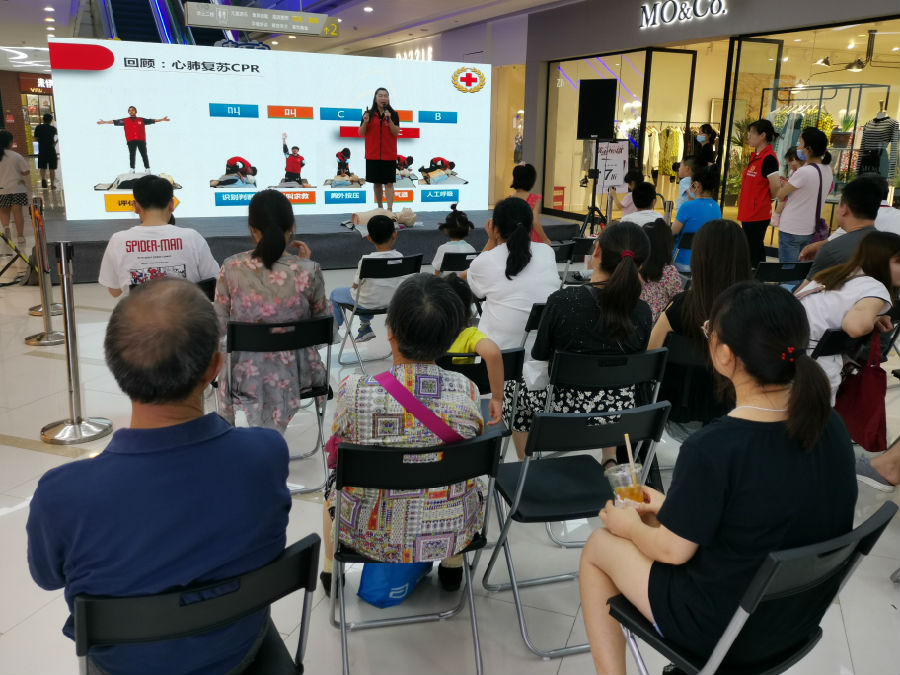 七彩假日,救护公益培训走进万宝广场