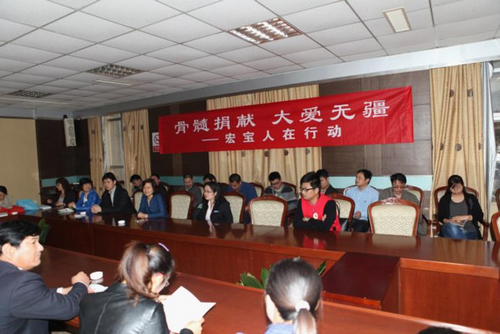 5月7日上午,江苏宏宝集团一楼会议室内欢声一片,“骨髓捐献,大爱无疆——宏宝人在行动”的大红标语映入眼帘,29名宏宝集团的干部职工聚集一堂,参加市红十字会组织的捐献造血干细胞集体血样采集活动。
