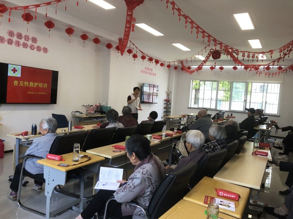 培训现场,金医生为大家介绍了红十字会的基本概况,普及接种新冠疫苗的知识,对常见的逃生技能做了详细讲解,并通过现场互动的形式加深大家的印象。随后对老年人比较关心的高血压、糖尿病做了讲解,金医生结合日常生活实际,用通俗易懂的语言,生动的事例及现场讲解与分析,重点指出预防高血压、糖尿病的主要方法。在活动中,居民纷纷向金医生咨询比较常见的火灾、溺水、中暑等意外伤害发生的救护原则及处理方法,还咨询了高血压、糖尿病等相关知识,金医生也认真耐心解答,最后给现场的老人测量血压,并告知他们注意事项,金医生的讲解得到了居民的一致好评,现场互动氛围也很不错。