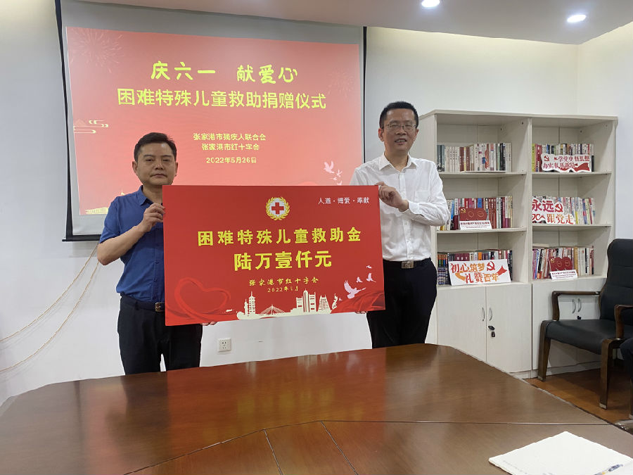 5月26日上午,市红十字会开展特殊困难儿童救助活动,向市残疾人联合会的19名特殊困难儿童发放救助金6.1万元。座谈会上,市残联党组书记、理事长曹跃飞感谢市红十字会对张家港市特殊困难儿童的大力支持,希望市红十字会一如既往地向特殊群体提供帮助,深化合作,共同做好人道救助工作。