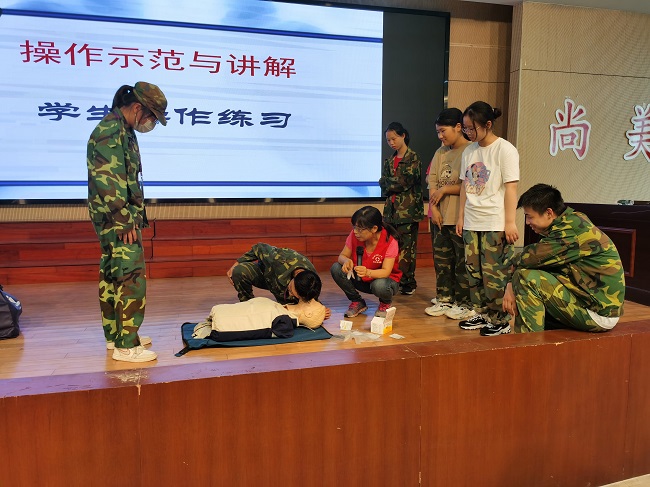 常熟市红十字会从2013年起,每年都在全市高一、大一新生军训中开展应急救护培训。参与授课的都是具有多年培训经验的资深培训师,他们用生动有趣的语言,结合生活中的真实案例,向学生们讲授心肺复苏术、海姆立克急救法以及创伤救护等内容,并将理论化为实践,亲身示范操作步骤的同时邀请学生上台实践操作。