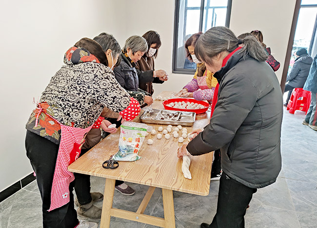 义诊结束后,工作人员拿出了提前准备好的糯米粉、豆沙馅,邀请老人们一起包汤圆。大家一边揉面团、包馅料、搓汤圆,一边聊着邻里家常。在一片欢声笑语中,老人们吃着自己制作的香甜软糯的汤圆,脸上洋溢着幸福的笑容。