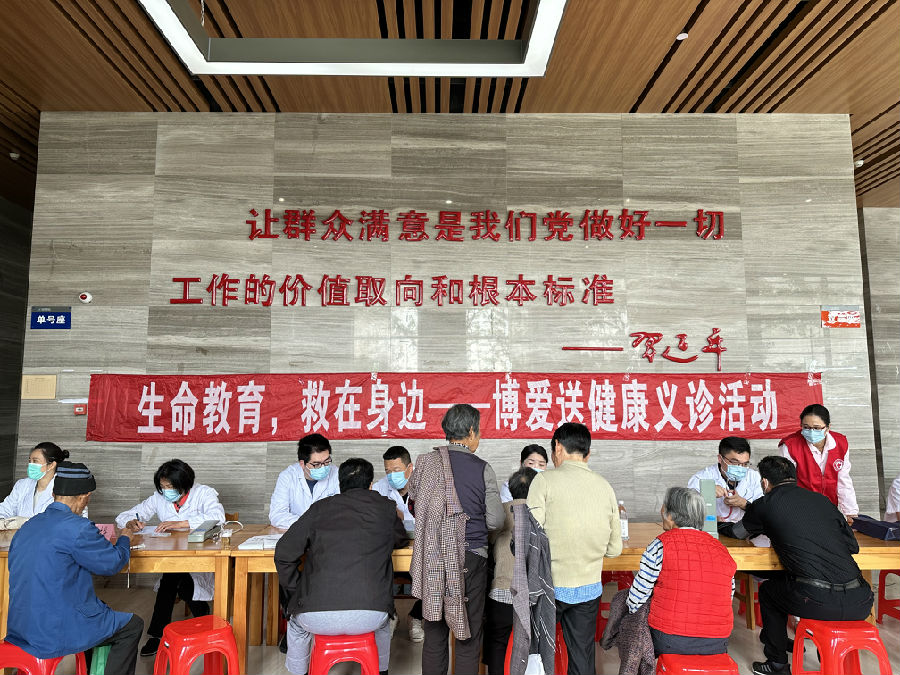 在金庭文体中心,来自医卫界别的心血管、中医骨伤、消化、血液科等专业的主任医师们现场为居民提供各类咨询及问诊服务。在开展义诊的同时,东蔡村“博爱家园”邀请中医师为居民开展中医养生讲座,受到群众一致好评。