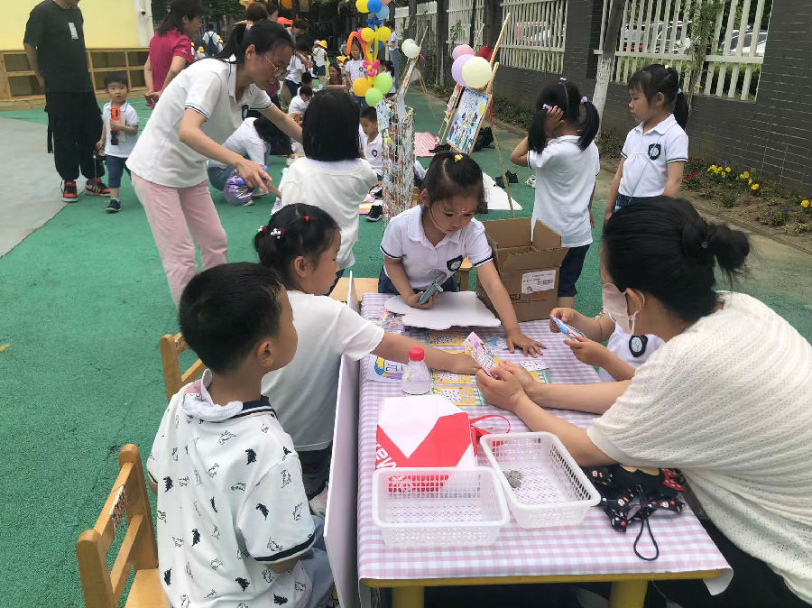 为了这场爱心活动,家长和孩子们动足了脑筋,自绘展板、做挂件、大声叫卖,义卖物品全部由各班的孩子们自愿捐赠。活动过程中,孩子们认识了钱币、知道了“买卖”的意义,还培养了语言表达能力和交往能力。