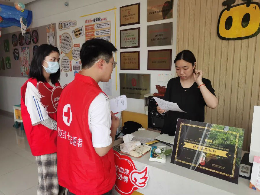 活动主阵地设置在十全街三言小驿,由街道红十字会工作人员及志愿者一同宣传无偿献血的重要意义、注意事项、献血流程及相关的奖励激励机制。同时,志愿者在社区红十字工作人员的带领下,在十全街沿线进行店铺宣传。部分商家自愿将“让爱点亮希望——无偿献血倡议书”张贴在店内显著位置,并且愿意参与无偿献血活动。